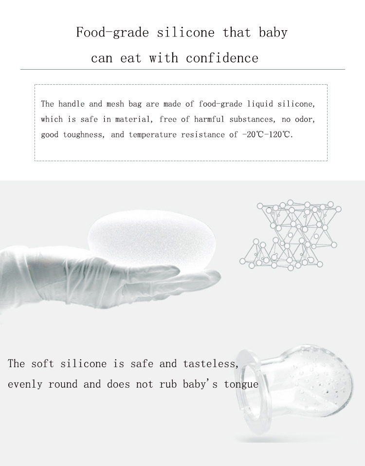 | 3.To relif baby's sore gums by chewing the soft silicone mesh net with some cold or frozen fruit. | |