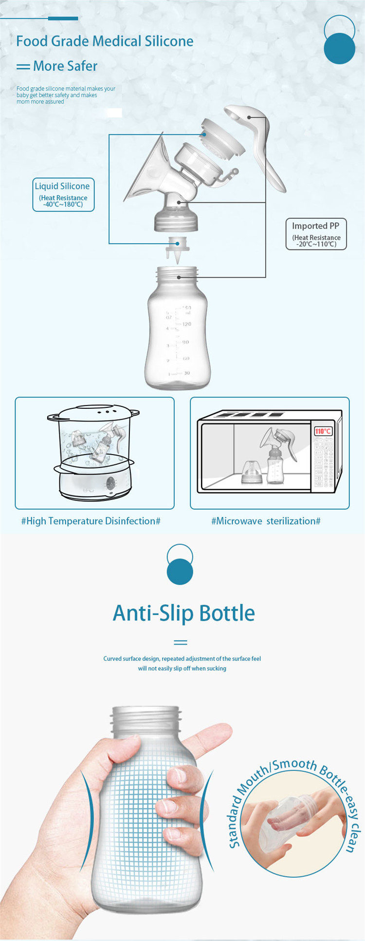 4. Manual breast pump made of imported food materials. safe & non-toxic, use safely.